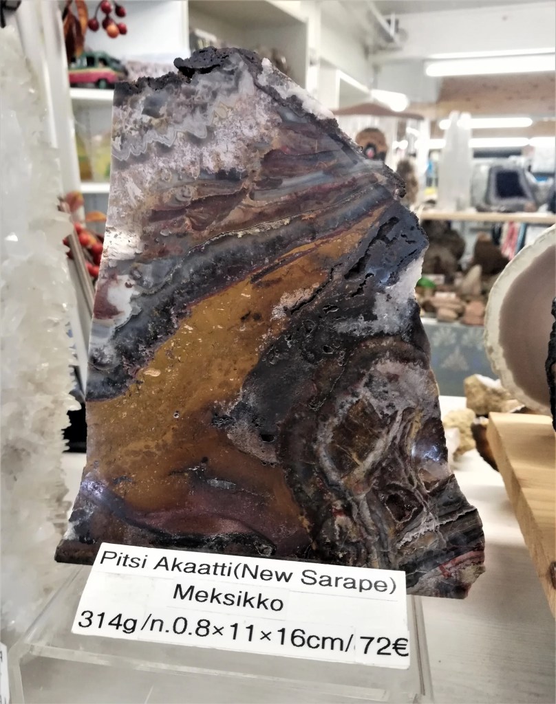 Hieno Pitsiakaattilevy, koko n. 0.8x11x16cm ja paino 314g. Akaatti on voimakas tunteellinen parantaja ja se tasapainottaa energiajärjestelmän feminiinisiä ja maskuliinisia puolia. Akaatti antaa kantajalleen rohkeutta ja itseluottamusta. Akaattilevyn voimat lataavat myös muita kiviä voimistaen niiden vaikutuksia. Akaatti sopii kaikkien Chakrojen voimistamiseen väristä riippuen. Astrologinen yhteys: Kaksonen ja Oinas saavat voimaa tästä kivestä.