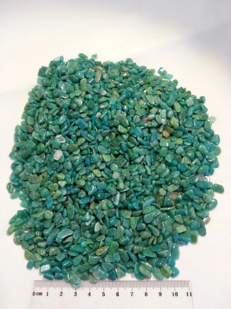 500g pussi Amatsoniitti mini-rumpukiveä. Amatsoniitti on tunnettu koristeellisena kivenä jo Egyptin faaraoiden ajoista lähtien. Amatsoniitti virittää astraalikehoja, kohottaa luovaa ilmaisua ja ykseyttä elämän kanssa, se tasoittaa hermostoa sekä auttaa unien tulkinnassa. Fyysisellä tasolla amatsoniitin sanotaan helpottavan lihasvaivoja. Lempeä, sinivihreä amatsoniitti on myös Neitsyt horoskooppimerkin onnenkivi. Kiviterapia suosittelee amatsoniittia mikroaalloilta ja elektromagneettiselta saasteelta suojautumiseen. Kiven voi asettaa tietokoneen läheisyyteen tai teipata kiinni vaikka matkapuhelimeen. Amatsoniitin sanotaan myös tuovan onnellisuutta ja iloa avioliittoon.