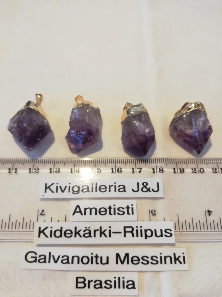 Upeat Ametisti Kidekärki-Riipukset Brasiliasta, galvanoidulla Messinki kauluksella(allergia/Nikkeli vapaa) Koko n.2×2.5-3cm.