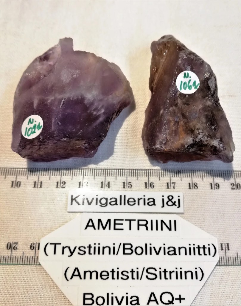 Ametriini on Ametistin ja Sitriinin ”yhdistelmä”. Upea AQ+ laatuinen raakapala Paino 102g, koko n. 5.5x6cm. Kiteen sanotaan olevan ametistin ja sitriinin ominaisuuksien täydellinen tasapaino. Sekä tasapainon että yhteyden kiven uskotaan lievittävän jännitteitä, tuovaa rauhaa ja stimuloivan luovuutta sekä tasapainottavan henkistä vakautta ja itseluottamusta. Ametriinin sanotaan olevan hyödyllinen seksuaalisuudelle, ja siinä on tasapaino maskuliinisen ja naisellisen energian sitriini- ja ametisti-segmenteistä. Se on hyödyllinen myös samaa sukupuolta oleville suhteille, ystävyyssuhteille ja ammattisuhteille. Uskotaan, että se myös vahvistaa immuunijärjestelmää, helpottaa väsymystä, päänsärkyä ja stressiin liittyviä sairauksia. Fyysisen paranemisen ohella sen uskotaan kohentavan henkistä tilaa parantamalla masennusta, itseluottamusta, luovuutta ja tasapainottamalla henkistä vakautta. Länsimainen astrologia suosittelee tätä syntymäkiveä Kaloille ja Jousimiehille.