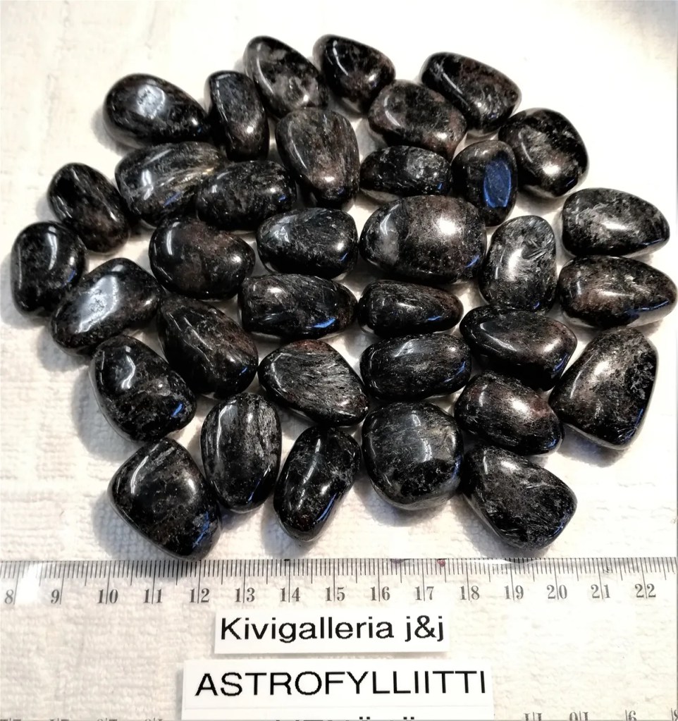Rumpuhiottu AQ-laatuinen Astrofylliitti, koko n.1,5-2cm x 2,5-3cm. Väreinä tumma sininen, ruskea, musta, hohtavilla säikeillä. Chakra: Juurichakra Astrofylliitti auttaa tunnistamaan omat kykymme ja myös päästämään irti turhasta vastuusta tai taakoista elämässä, näin edistäen käyttäjänsä kehitystä henkisellä polulla. Suojelee negatiivisilta energioilta ja on hyvä kivi meditoimiseen. Astrofylliitti huokuu rauhallisuutta, rehellisyyttä ja syvällisyyttä ja opettaa sinua rakastamaan itseäsi ehdoitta. Astrologia: Skorpioni