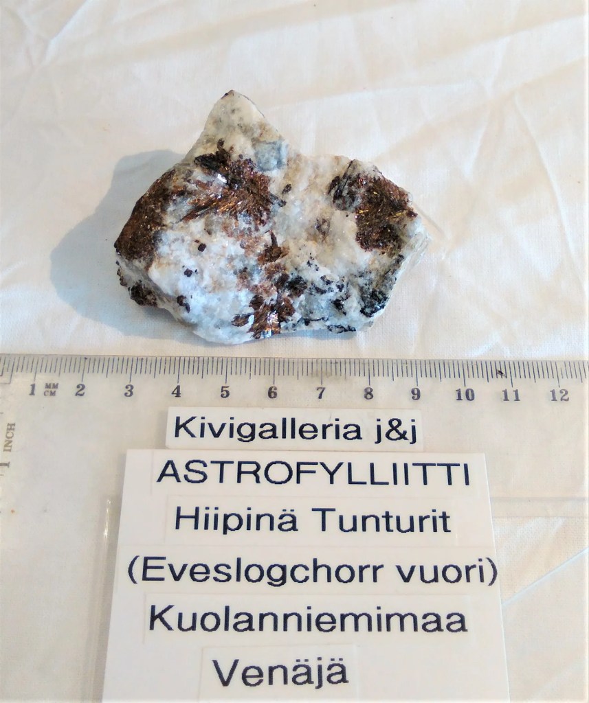 Hieno pala Astrofylliittiä (raaka) Venäjän Hiipinä-tuntureilta Kuolanniemimaalta. Hyvä meditaatiokivi, vahvistaa keskittymiskykyä.
