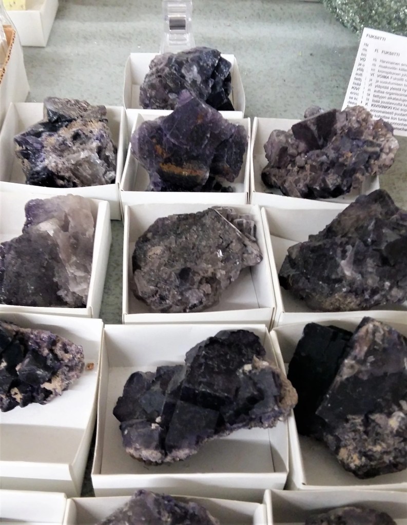 Upeita, tummaliila raakapaloja Fluoriitista. Fluoriitti on tehokas ympäristön kielteisten energioiden sulattaja, lisäksi se on hyvä kivi auran ja chakrojen puhdistamiseen. Fluoriitti stimuloi kolmatta silmää ja se onkin hyvä meditaatiokivi, sen sanotaan kohottavan mystisiä näkyjä. Toimii hyvin sähkömagneettisen säteilyn torjumisessa eli suositellaan kiven pitämistä esim. tietokoneen läheisyydessä.