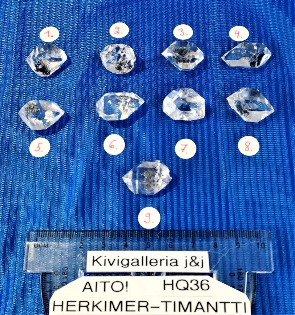 Herkimer-timantti HQ (High quality) -laatu, on erityinen vuorikiteen eli kirkkaan kvartsin muunnos ja on saanut nimensä löytöpaikkansa mukaan (Herkimer County, New York, USA). HUOM: Vain tästä paikasta tulevat AIDOT Herkimer-timantit! Herkimer-timantti kannustaa spontaaniuteen ja hetkessä elämiseen. Se herkistää muun muassa selvänäköisyydellle ja telepaattiselle kommunikaatiolle sekä aktivoi valokehoa. Chakra: Kruunuchakra Jousimiehen voimakivi. Sanotaan, että tämä kivi tekee hyvää aineenvaihdunnalle, se virkistää muistia ja kasvattaa henkisiä kykyjä. Nro.1. paino 3,30g, koko 1,5 x 2cm. Nro.2. paino 3,66g, koko 1,5 x 2cm. Nro.3. paino 4,07g, koko 1,5 x 2,1cm. Nro.4. paino 4,28g, koko 1,5 x 2,4cm. Nro.5. paino 4,30g, koko 1,6 x 2,2cm. Nro.6. paino 4,35g, koko 1,9 x 2,1cm. Nro.7. MYYTY Nro.8. paino 4,57g, koko 1,8 x 2,3cm. Nro.9. paino 4,71g, koko 1,7 x 2,5cm. Nro.10. paino 5,26g, koko 1,7 x 2,5cm.