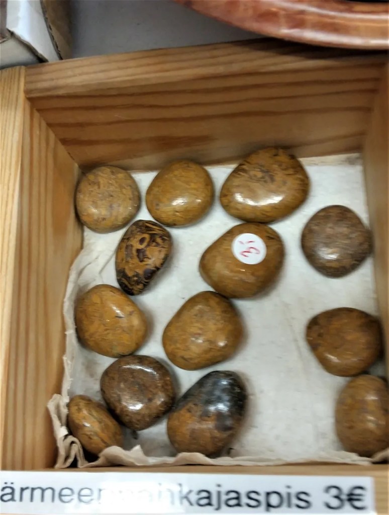 Käärmeennahka jaspis, koko n. 2-3cm. Käärmejaspis on yksi vanhimmista hoitokivistä Kiinassa ja Intiassa. Juurichakran kivi. Kaikkia Jaspiksia pidetään parantavina, maadoittavina ja kielteisyyttä torjuvina kivinä. Niiden ajatellaan avaavan yhteyden luontoon ja maahan. Jaspiksen maanläheisten sävyjen uskotaan auttavan käyttäjäänsä keskittymään ja viemään asiat loppuun.