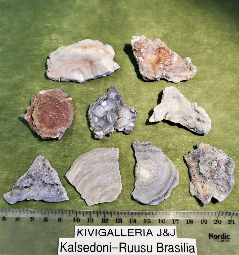 Kalsedoni-ruusu raakapalat. Koko n.3-4 x 4-6cm. Astrologia: Kaksoset, Vaaka, Skorpioni Chakra: Sydänchakra, Kurkkuchakra Kalsedoni on tunteellisten tarpeiden ja rehellisyyden ilmaisija, se lievittää syyllisyydentuntoa. Kivi on hoivaava, se kutsuu huolehtivia, empaattisia vaistoja pintaan. Sen uskotaan rohkaisevan rehellisyyteen, ongelmista ja tarpeista puhumiseen ja yleensäkin ilmaisemaan itseään. Sopii erinomaisesti tilanteisiin, joissa on tarkoitus päästä eroon tarpeesta ympäröidä itsensä liialla tavaralla. Kalsedonia pidetään myös ryhmiä yhdistävänä kivenä.