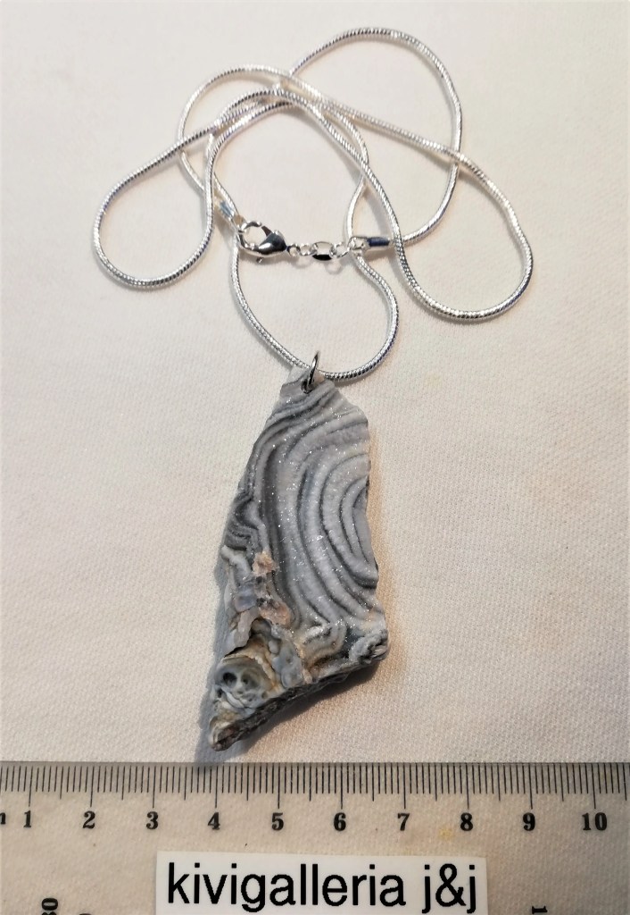 Kaulakoru joka ei taatusti kävele vastaan seuraavassa kadunkulmassa! Uniikki Kalsedoni-ruusu riipuskivi, koko n. 2.7 x 6cm + käärmeketju hopeaa, pituus 56cm. Astrologia: Kaksoset, Vaaka, Skorpioni Chakra: Sydänchakra, Kurkkuchakra Kalsedoni on tunteellisten tarpeiden ja rehellisyyden ilmaisija, se lievittää syyllisyydentuntoa. Kivi on hoivaava, se kutsuu huolehtivia, empaattisia vaistoja pintaan.